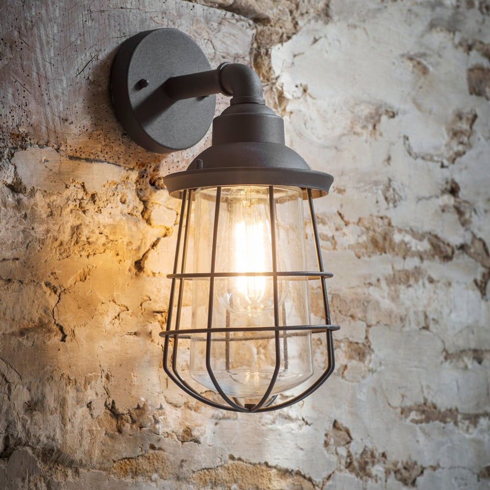 The striking caged design of the Finsbury Wall Light makes it a popular choice when updating outdoor lighting. The industrial element of the piping style arm offers a unique and eye-catching design aspect.